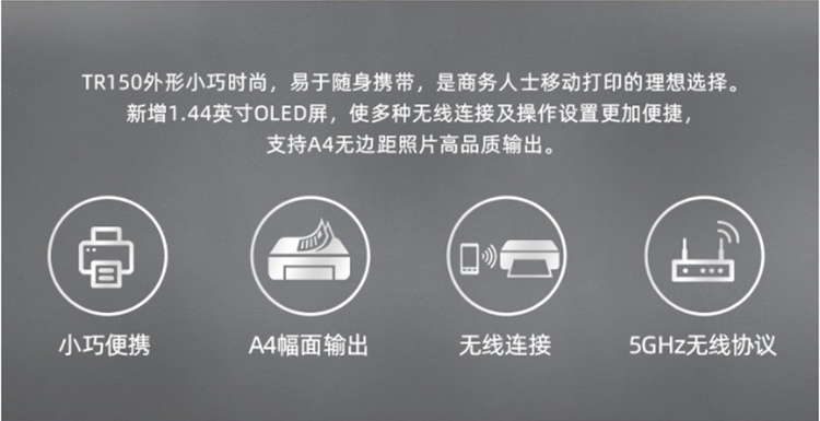 佳能PIXMA TR150便携式打印机A4移动无线WiFi喷墨照片打印机