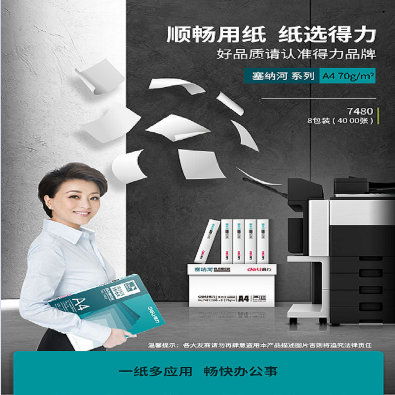 得力 deli 复印纸 7480 A4-70g-8包/箱