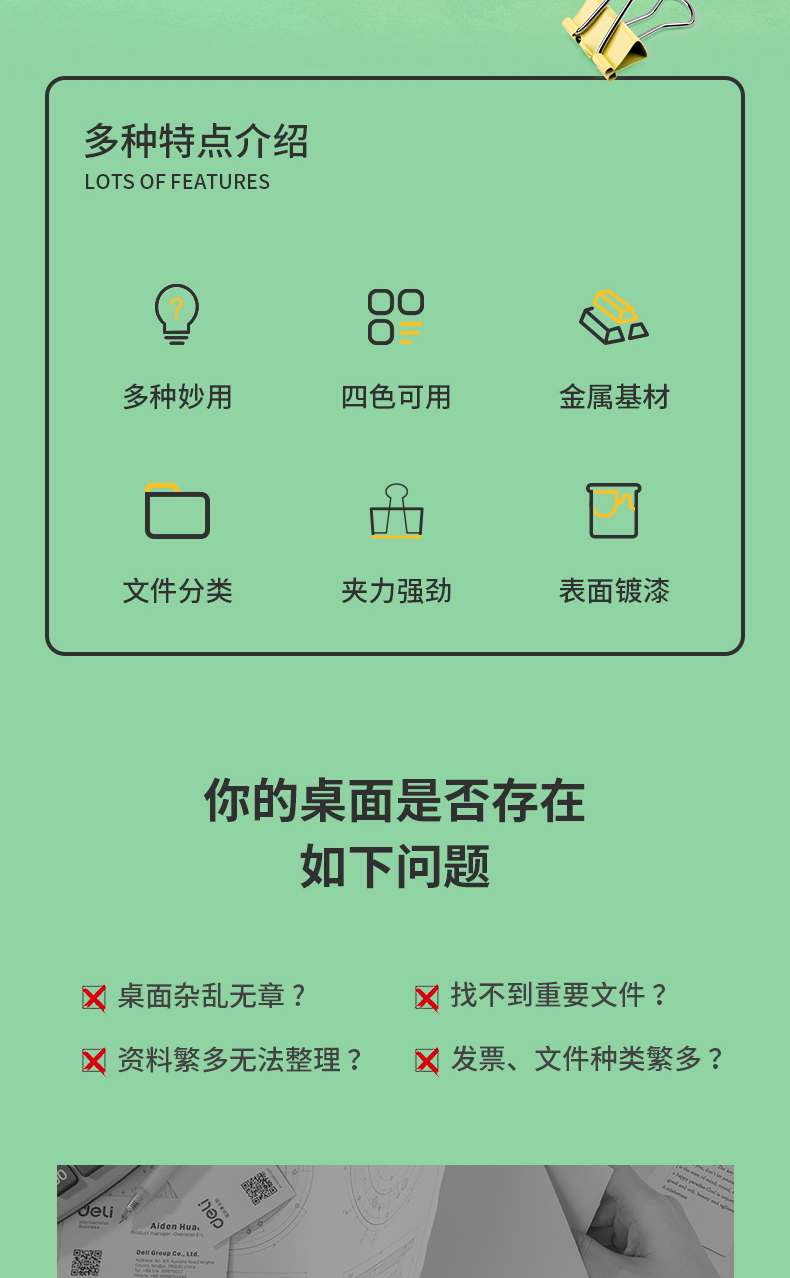 得力 deli 文件管理8555彩色长尾夹40只19mm 5#