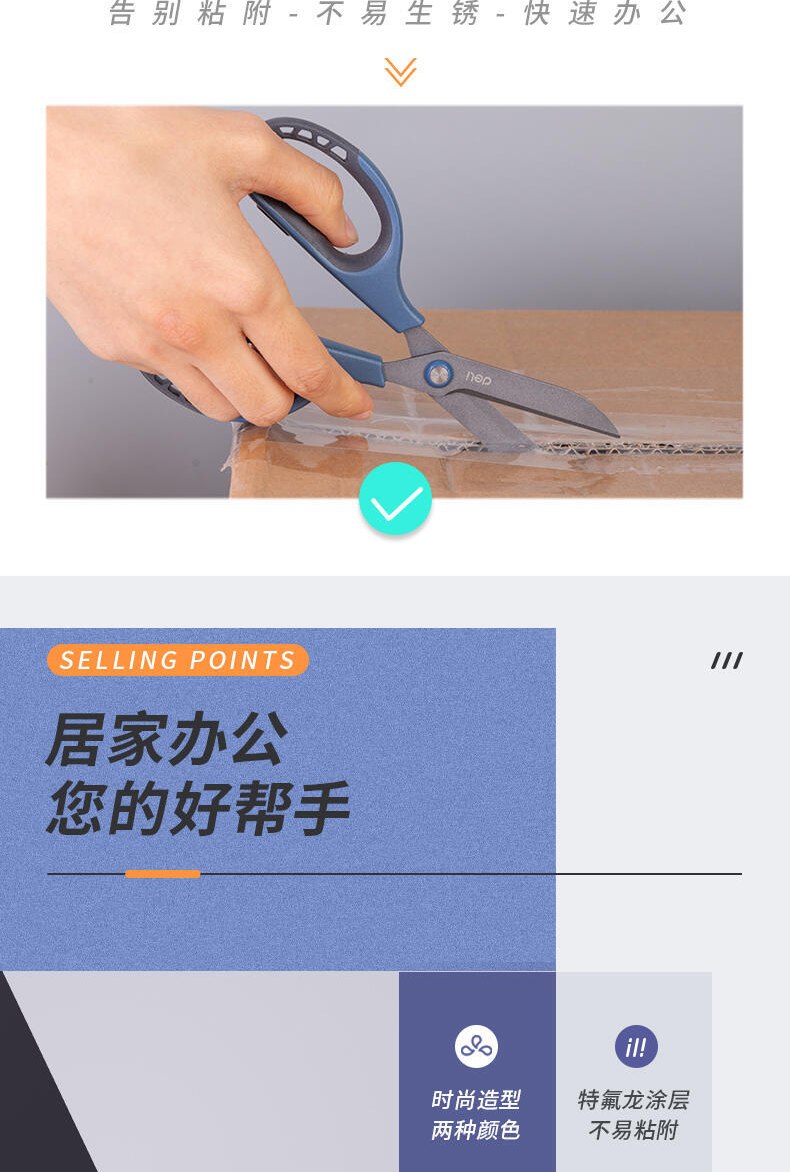 得力(deli)77753 特氟龙防粘防锈办公居家剪刀 省力剪子 蓝色