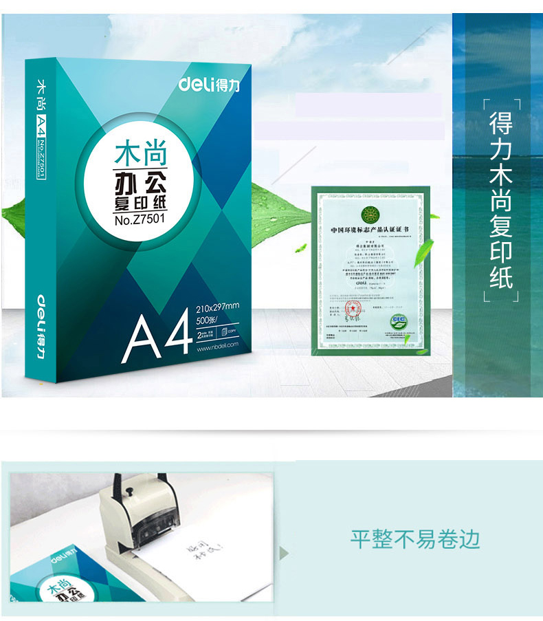 得力 deli 7375复印纸A3 70g 500张/包 4包/箱 (2000张)
