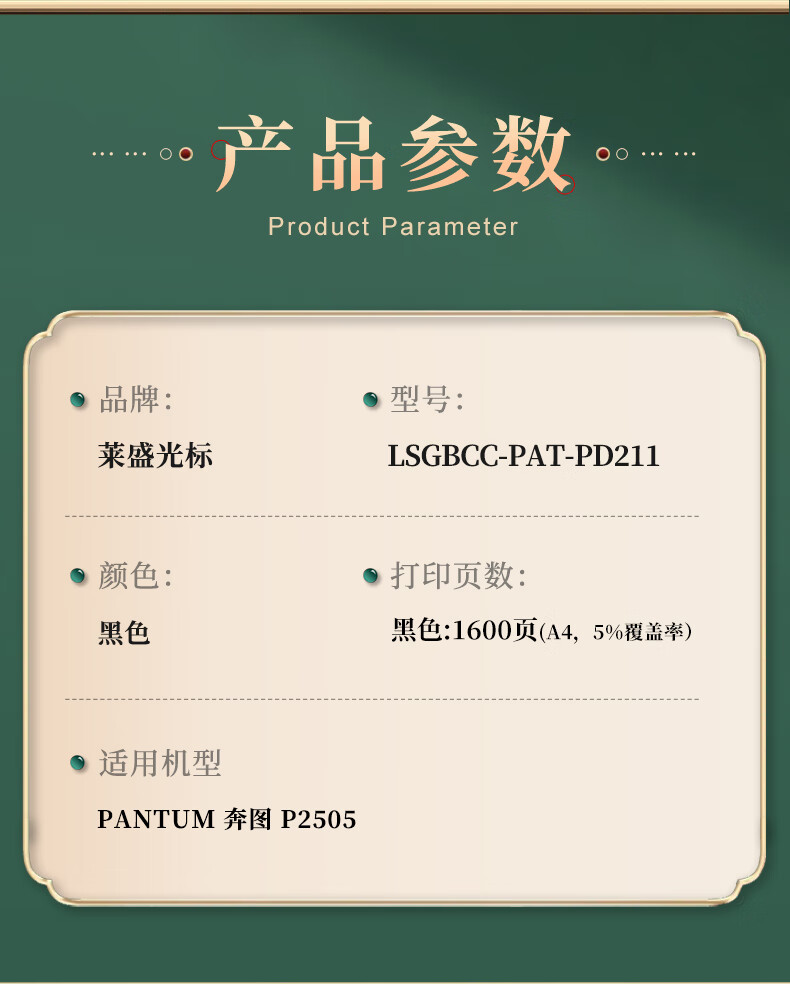 莱盛光标LSGBCC-PAT-PD211硒鼓黑色有芯片PANTUM 奔图 P2505