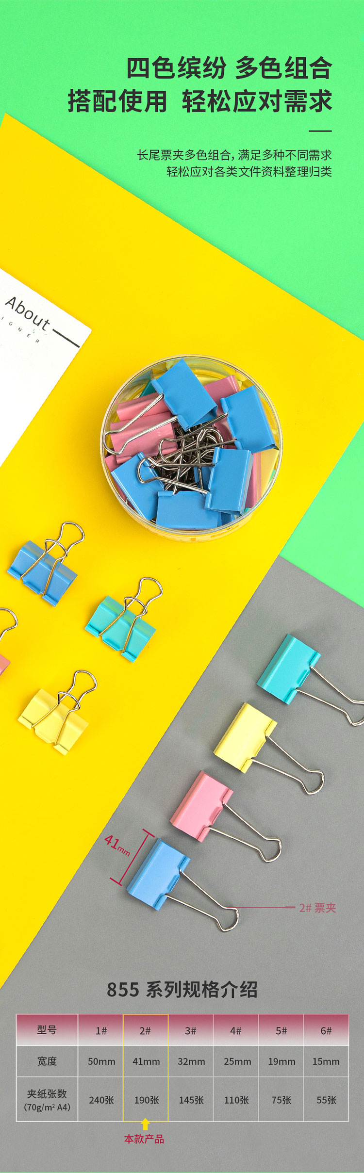 得力 deli 24只41mm彩色长尾夹票夹 2#金属燕尾夹票据夹子 办公用品 8552